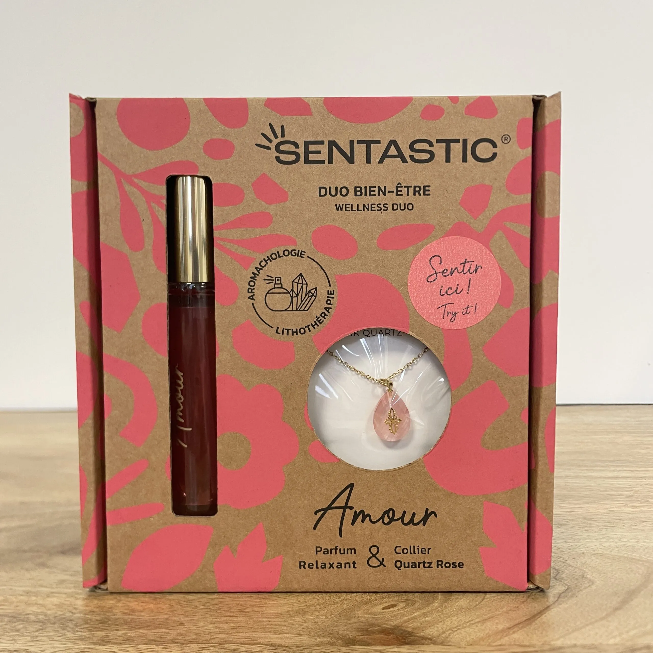 Coffret Amour – Parfum relaxant & collier quartz rose