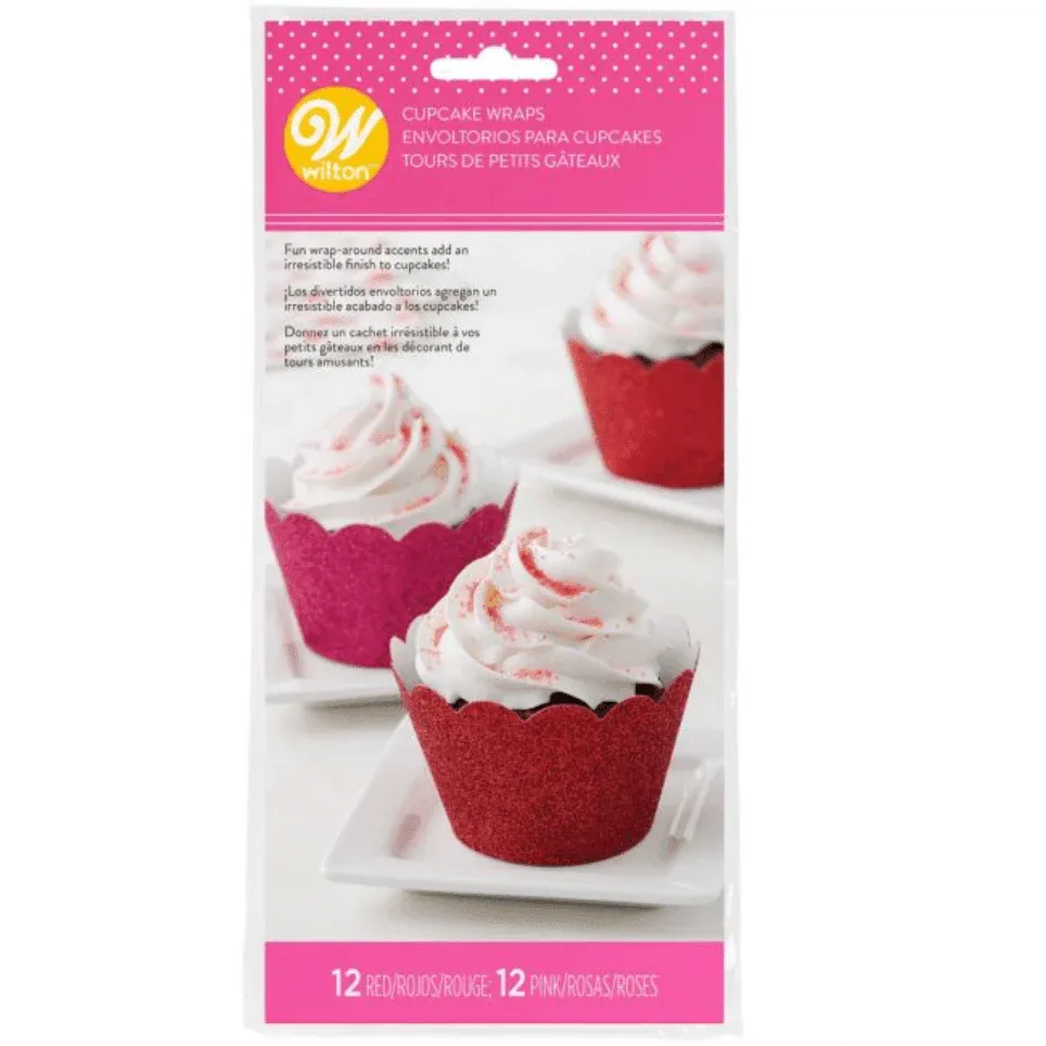 24 Wraps à Cupcakes Rouge Pailletée