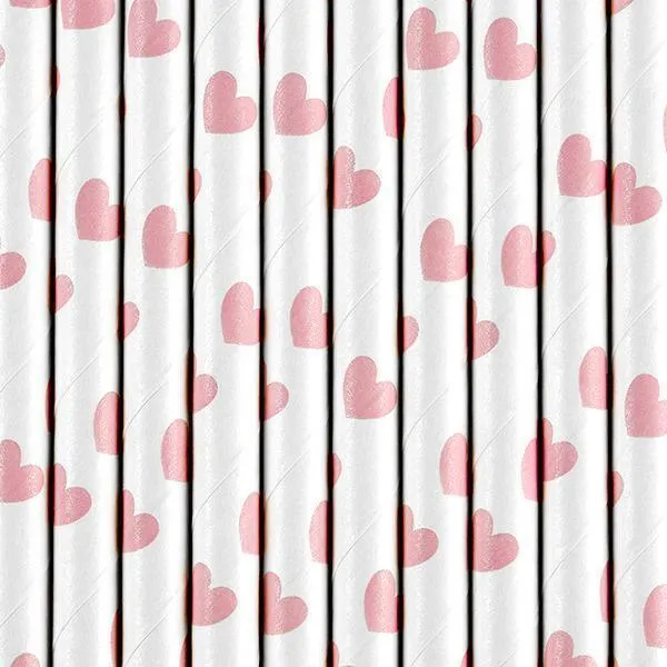 🌸 Pailles à Motif Cœur – Lot de 10