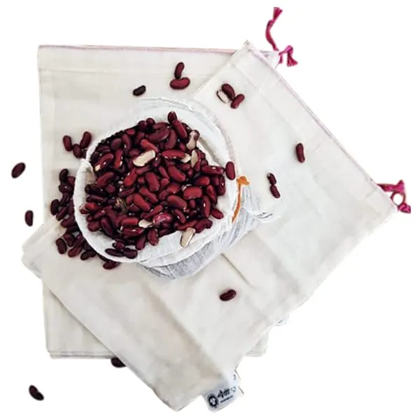 ÉCOLOGIQUES : ces sacs sont réalisés en gaze de coton biologique. Le tissu n’a reçu aucun traitement ; ils sont donc sains pour l’alimentaire. Ils permettent d’éviter les sacs en plastique et même les sachets kraft.
