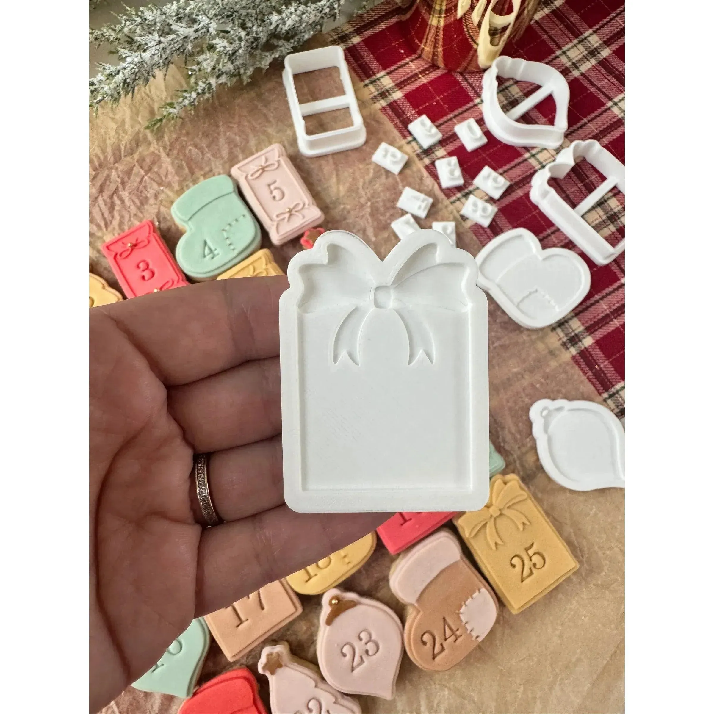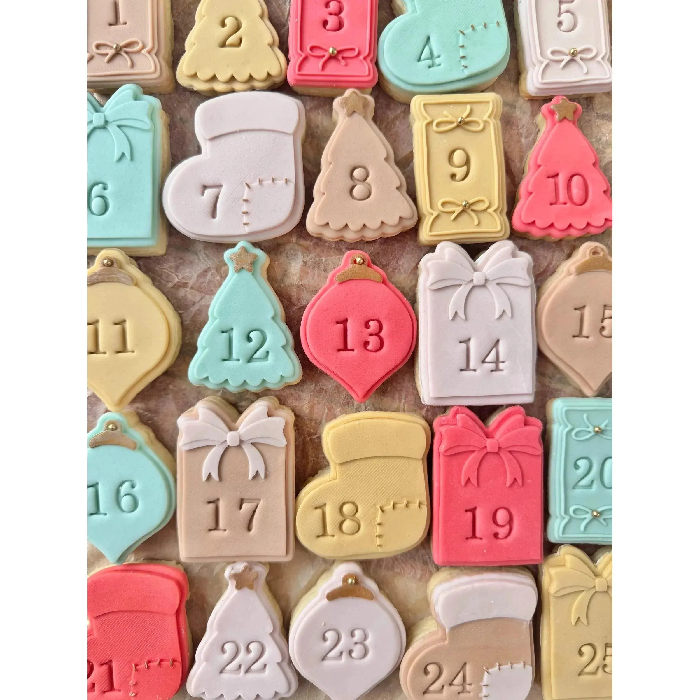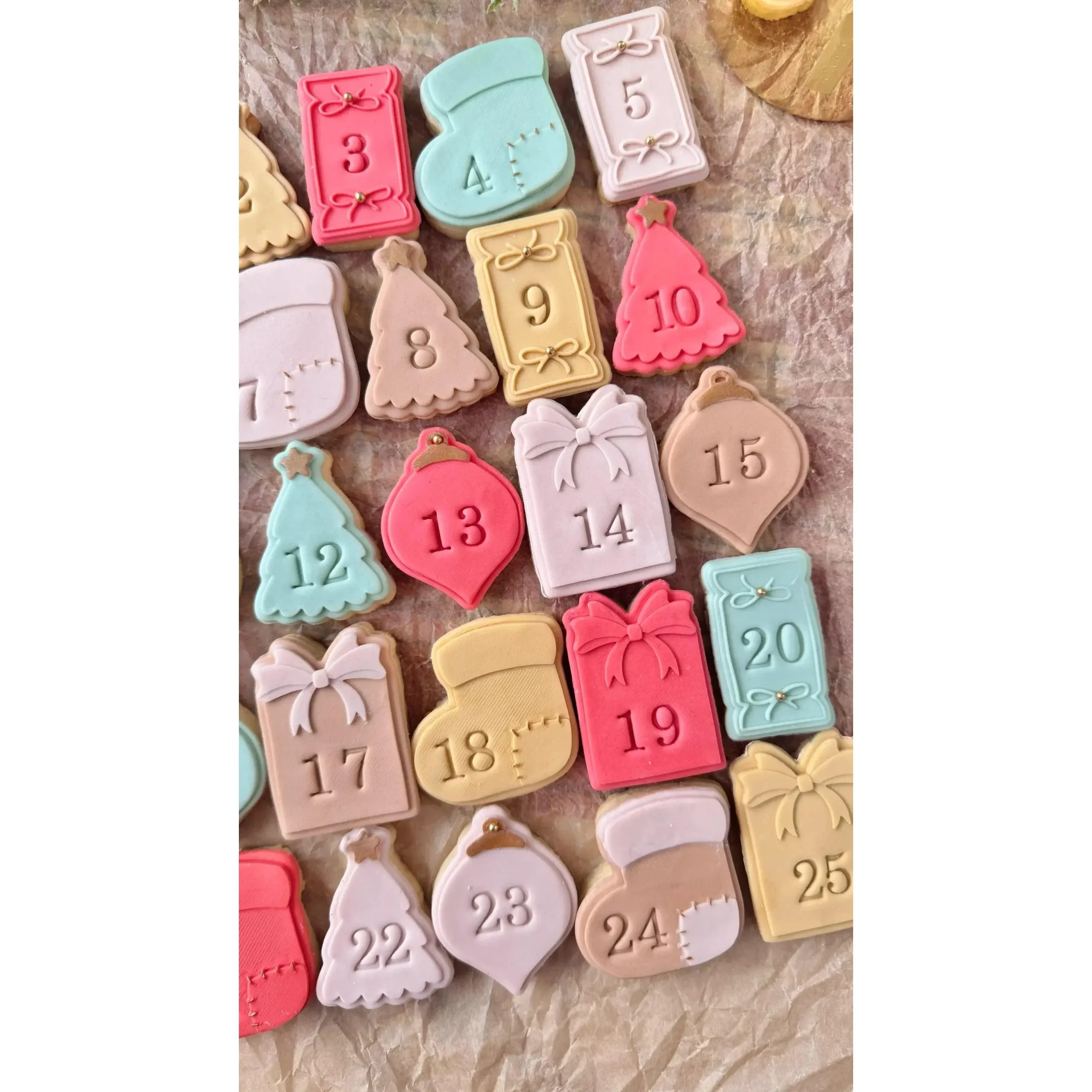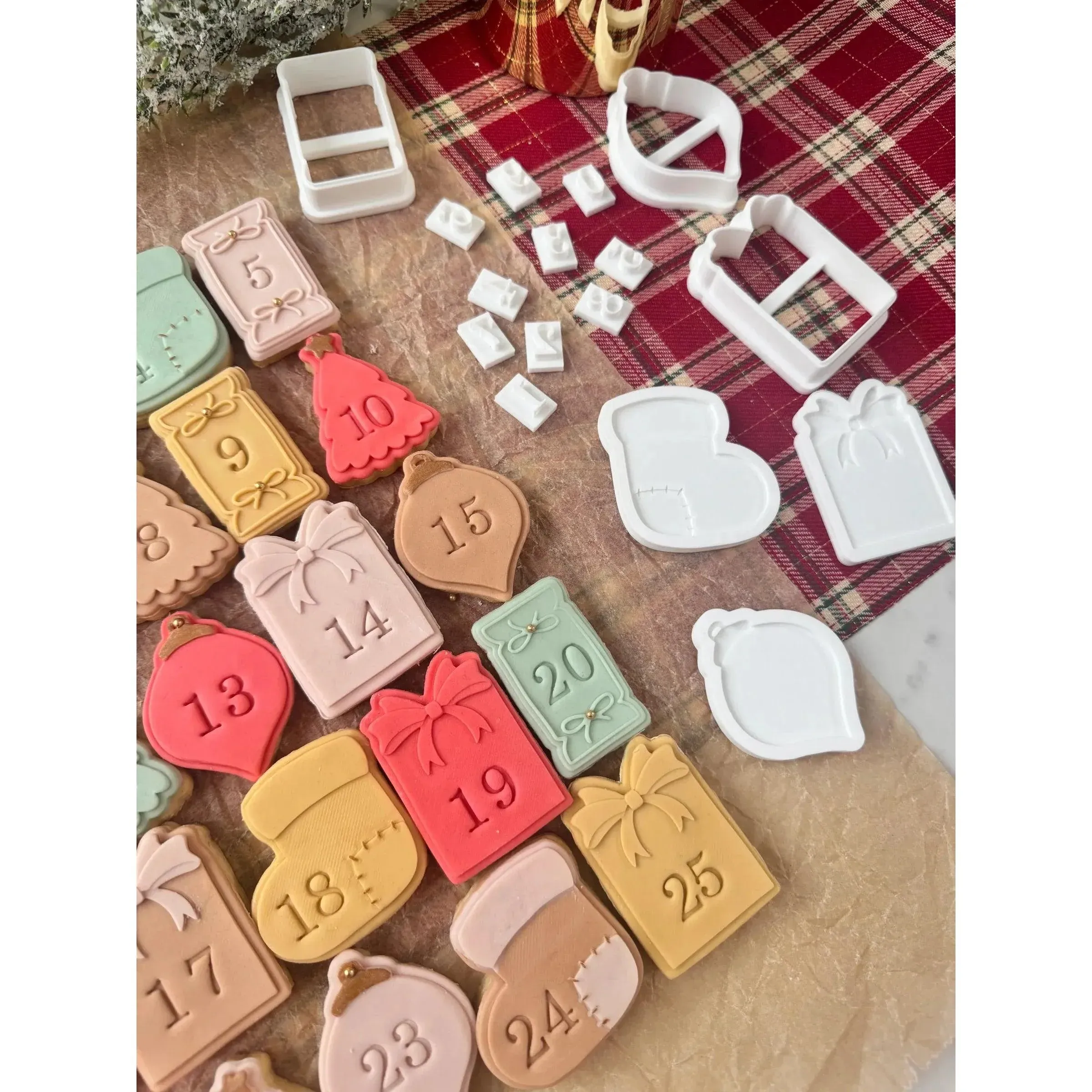 Transformez votre saison de Noël avec le Calendrier de l’Avent Oh My Cookie, un ensemble de tampons et emporte-pièces parfait pour réaliser votre propre calendrier gourmand. Ce kit inclut cinq tampons de formes variées (bottes, sapins, ornements) avec leurs emporte-pièces assortis. Idéal pour créer des biscuits ou des décorations en pâte à sucre, chaque tampon mesure entre 4,5 et 5,5 cm de hauteur. Un kit de chiffres de 0 à 9 est inclus pour personnaliser chaque jour de votre calendrier, mais vous pouvez également utiliser les formes sans les numéros pour une touche créative supplémentaire.