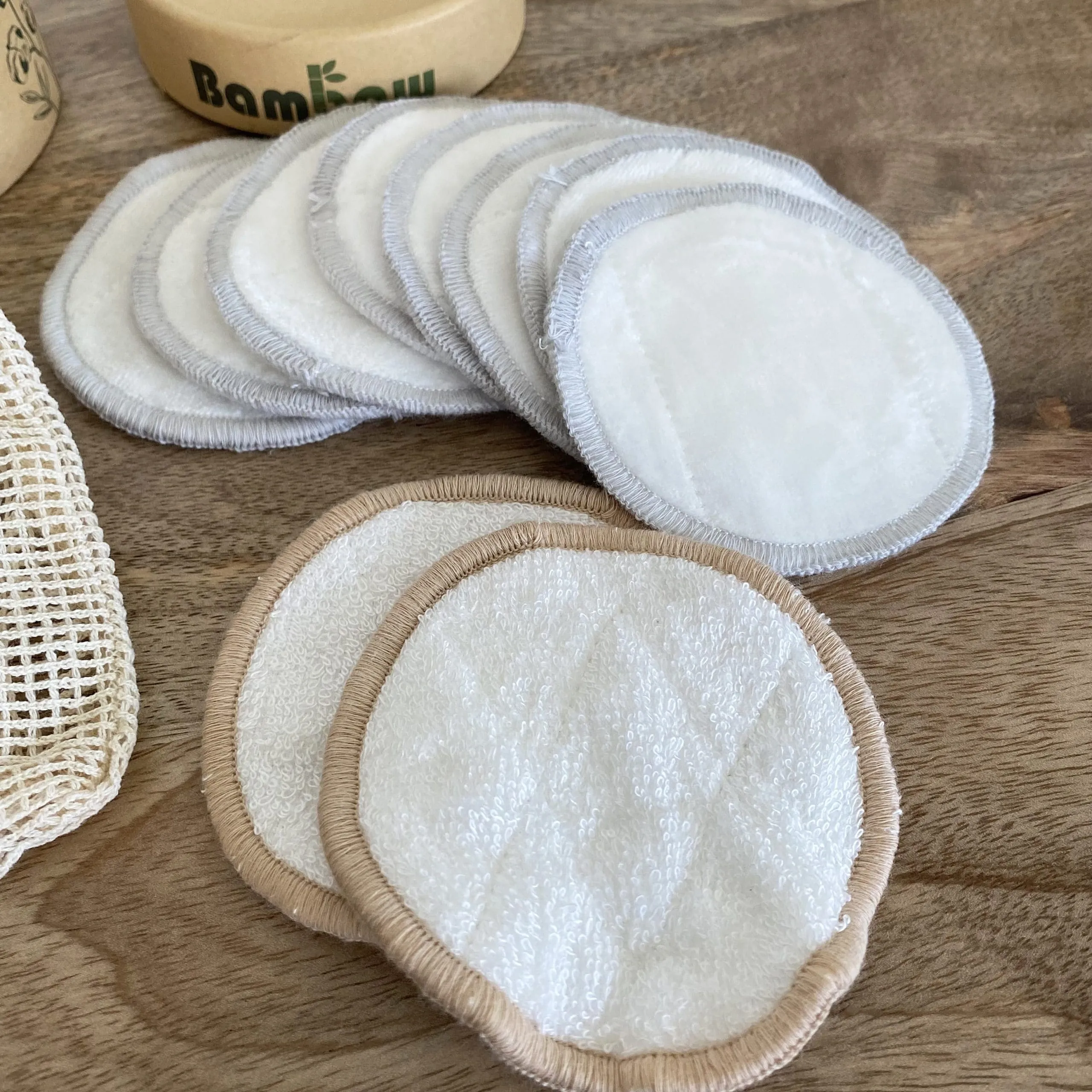 Lot de 10 disques démaquillants lavables et réutilisables en fibre de bambou.