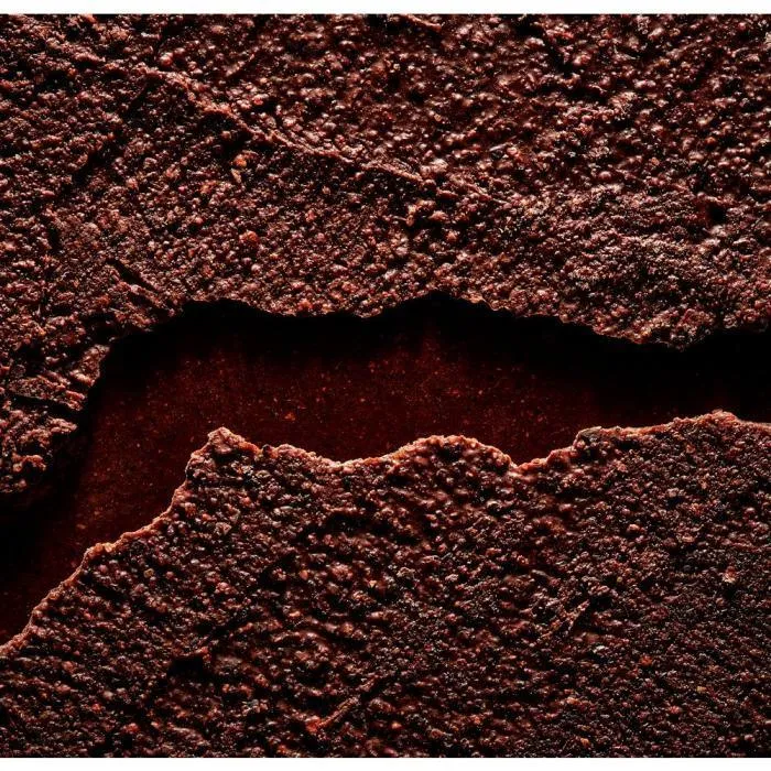Découvrez la couverture noire texturée Oqo 73% de Valrhona, une innovation unique conçue pour les professionnels. Fabriquée avec des fèves de cacao entières non décoquées, cette couverture offre une texture croustillante inédite et un profil aromatique riche et complexe.