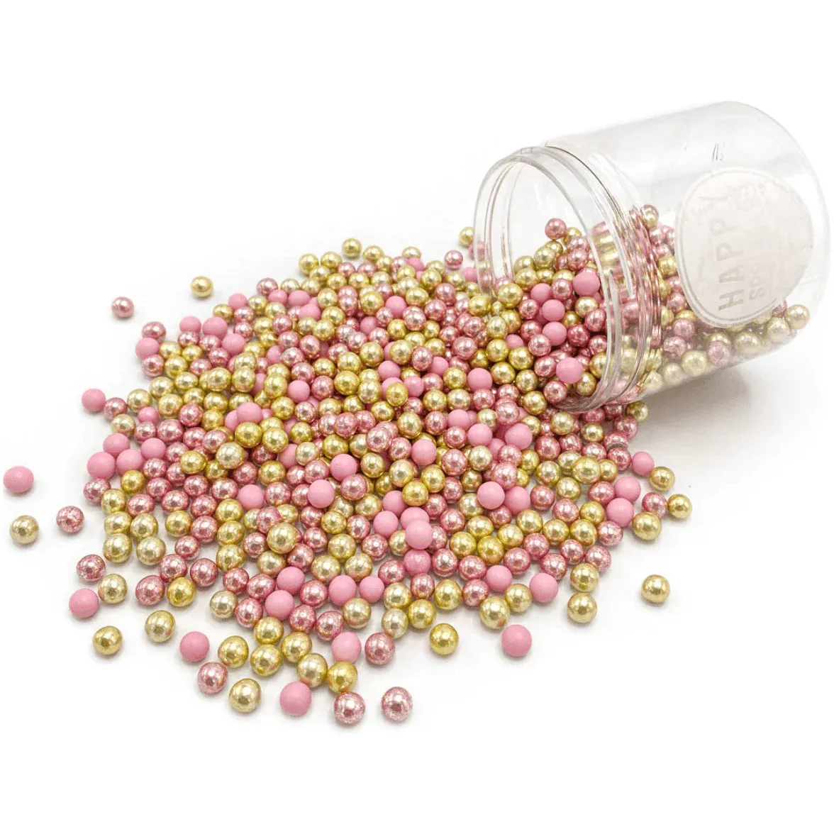 🌟 Happy Choco Dragées – Petites Boules Décoratives – Doré, Rose Métallique et Rose 🎀