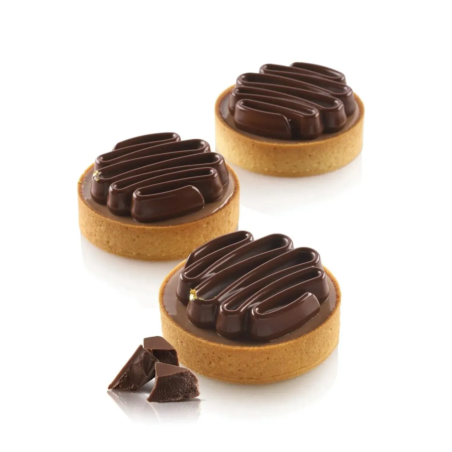 Tarte moderne chocolat avec insert moulé au design graphique