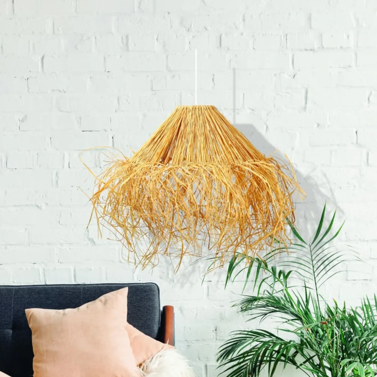 Ce kit DIY permet de réaliser vous-même une magnifique suspension en raphia.