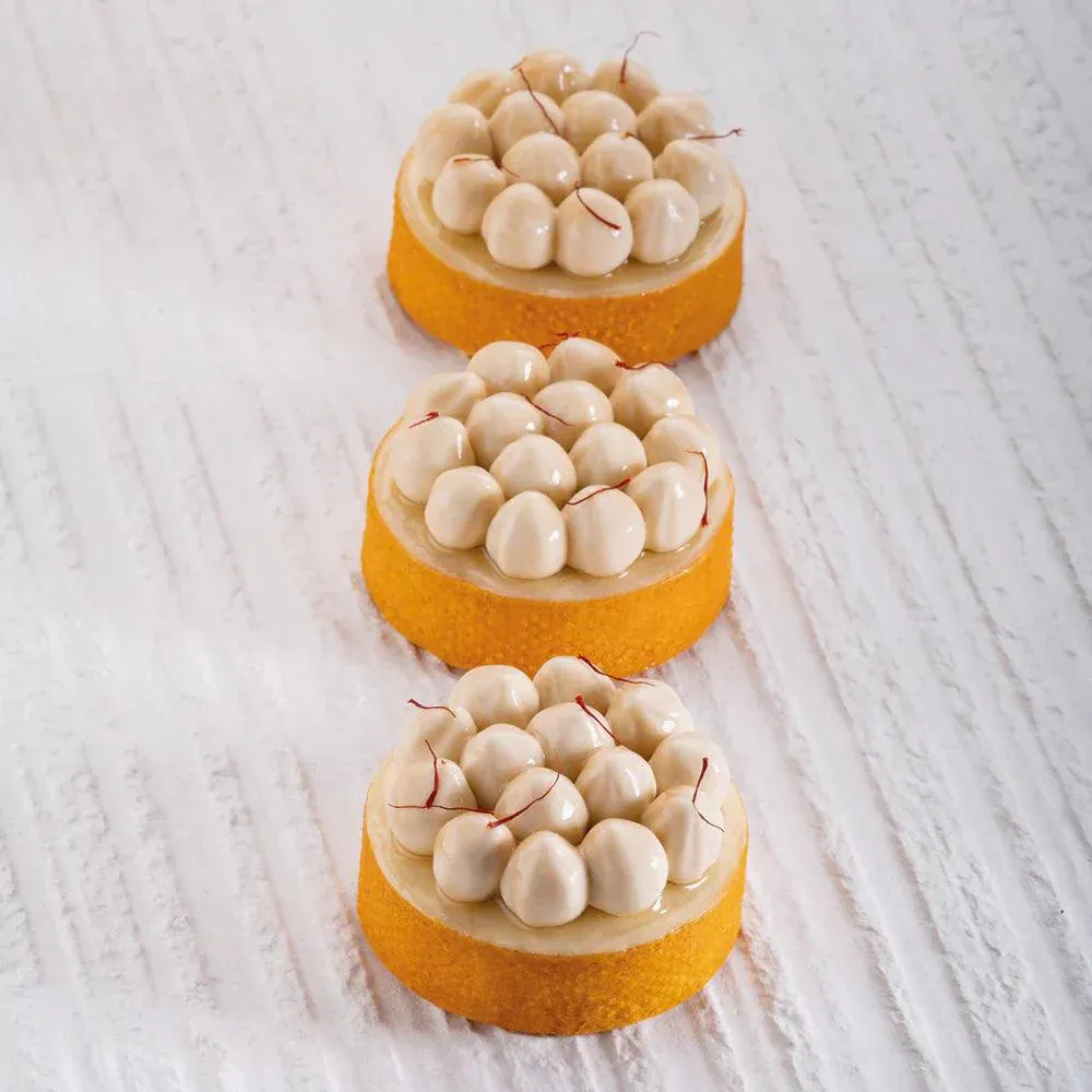 Ce moule est parfait pour sublimer vos entremets, inserts crémeux, crémeux au fruit, glaçages, préparations à base de mousse, inserts ou éléments de décor.